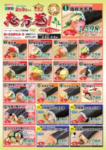 節分といえば恵方巻き! ご予約頂いたお客様には通常ポイントプラスボーナスポイントプレゼント!! 新鮮館は食品ロス削減に取り組んでいます。食品ロスを減らす為、出来る限りご予約でのご利用をお願いいたします。