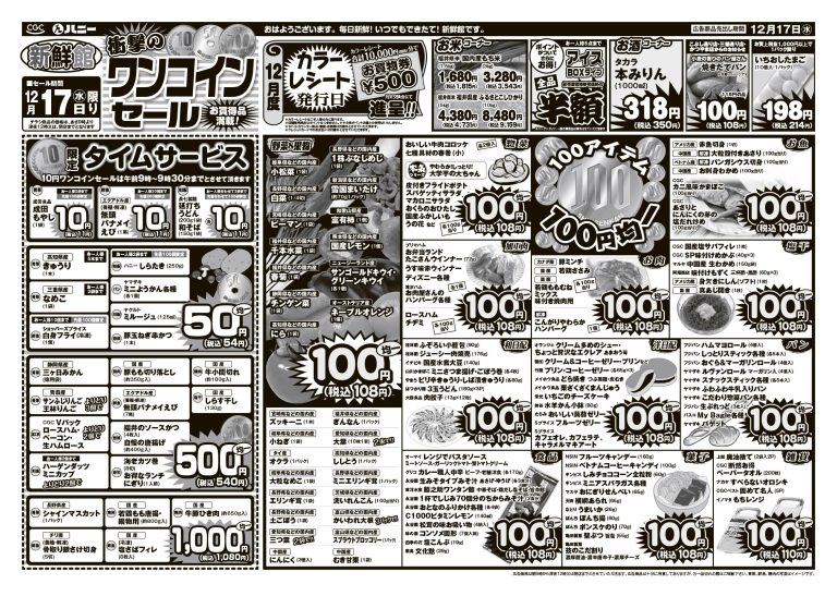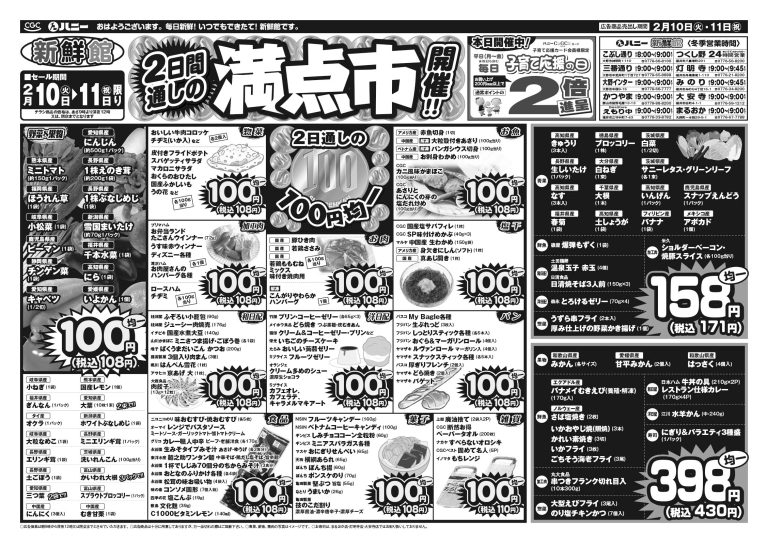 毎週月曜日は青果の日 毎週火曜日はシルバーデー 毎週水曜日は100円均一 毎週水曜日はカラーレシート発行日 毎週木曜日はポイント券ご使用日 毎週金曜日は玉子の日 毎週土曜日は100ポイント券ご使用日 毎月15日は特別シルバーデー 月~金曜日子育て応援の日 |