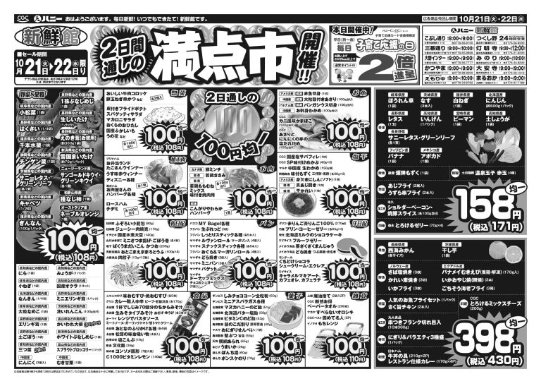 毎週月曜日は青果の日 毎週火曜日はシルバーデー 毎週水曜日は100円均一 毎週水曜日はカラーレシート発行日 毎週木曜日はポイント券ご使用日 毎週金曜日は玉子の日 毎週土曜日は100ポイント券ご使用日 毎月15日は特別シルバーデー 月~金曜日子育て応援の日 |